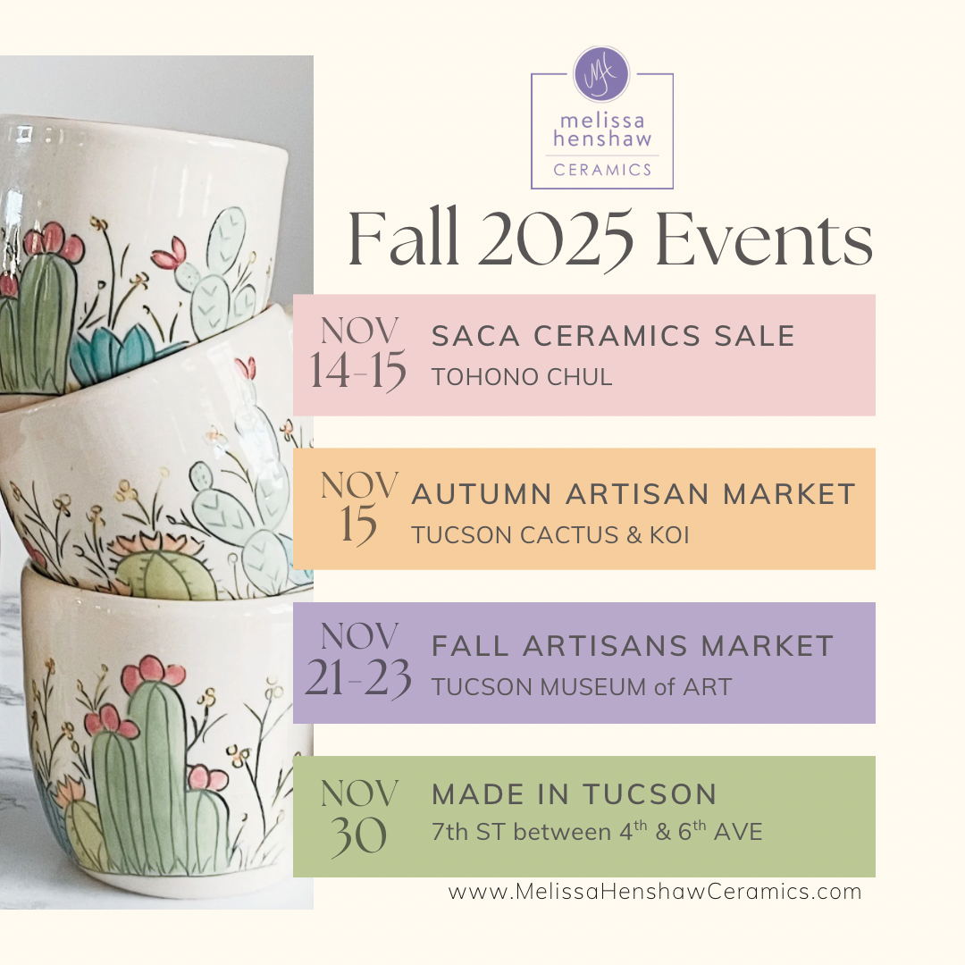 Follow Melissa Henshaw Ceramics on Instagram to see work in progress, fun Reel videos, what's coming soon, and more!