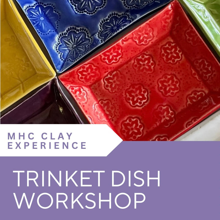 Join us for one of two Trinket Dish Workshops this fall and make two cute ceramic dishes, one for you and one for a friend. It will be a great chance to play with clay, learn something new, and be creative! Plus, trinket dishes make great gifts for the holidays!