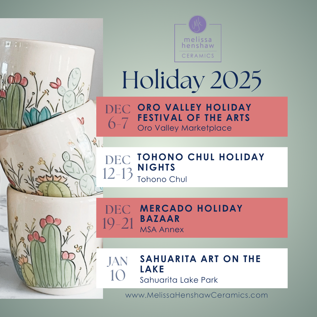 Follow Melissa Henshaw Ceramics on Instagram to see work in progress, fun Reel videos, what's coming soon, and more!